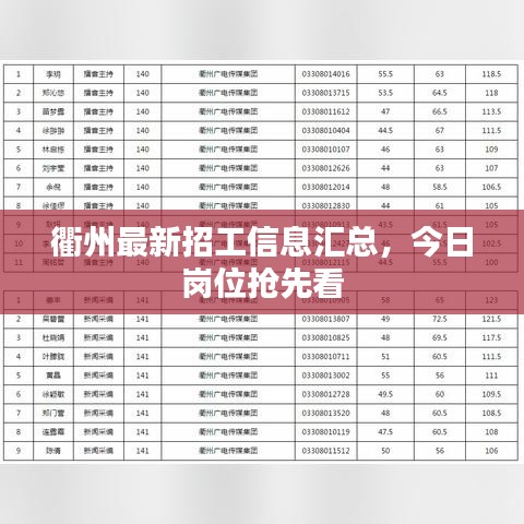 随着经济的持续发展,衢州地区的企业和行业在不断地壮大和扩张,对于人才的需求也日益增加,本文将为您详细介绍衢州今日招工的最新信息,带您了解当地的就业市场。